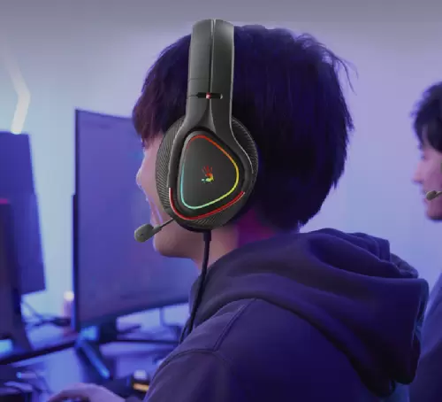 这款游戏耳机不仅支持3.5mm有线连接,还内置了升级的蓝牙v5.0低延迟、低功耗芯片,能够快速连接电脑、手机、平板、手柄、游戏机等设备,而且更有比蓝牙快8倍的高速率无线无损音频传输,12米传输距离内抗干扰性能更强更稳定。同时,血手幽灵Bloody还为其加入了RGB流光灯效,入眼便能感受到浓厚的电竞气息,游戏沉浸感极佳。