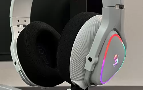 作为一款头戴式游戏耳机,血手幽灵Bloody MR710采用人体工学耳罩,配备了超细纤维网状立体大耳垫,自由贴合耳朵,透气不闷耳、不漏音,亲肤佩戴、柔软舒适,即便是长时间佩戴,也没有太多疲劳感。其伸缩式头梁支持自由调节,可有效降低压迫感,并且能够90°折叠旋转,既方便收纳,也可以佩挂脖颈,实用性相当不错。