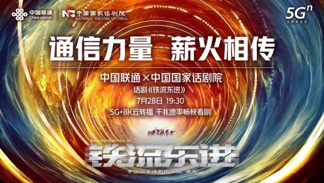 7月28日,中国联通携手中国国家话剧院推出话剧《铁流东进》直播专场,通过5G智慧剧场生动呈现红色电波的历史故事,彰显薪火相传的通信力量。中国联通APP、沃视频及中国联通官方微信、微博、抖音、快手同步播出。
