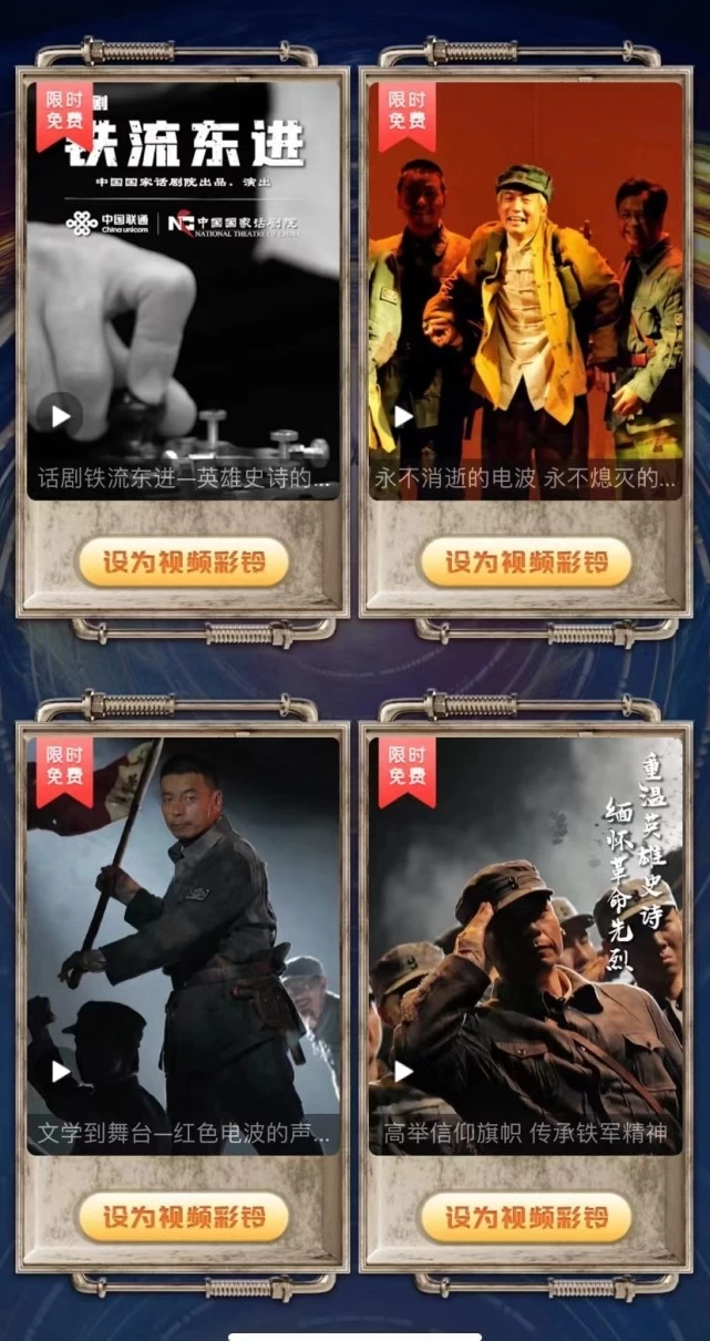 视频彩铃是5G时代通话社交的新宠,当传统的音频彩铃已不能满足当下更多元化的需求,视频彩铃从“听”升级到“看”,成为展示数字文化的全新载体。《铁流东进》主题视频彩铃的上线,以最新的通信技术,承载起永不消逝的红色电波,带来穿越时空的回响,进一步深化拓展红色故事的内涵和外延,助力数字文化传播。