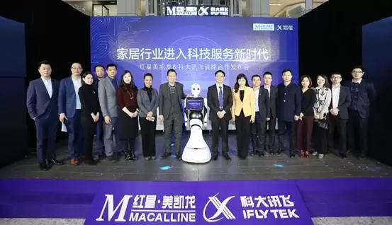 2017年12月18日,红星美凯龙在北京宣布,与人工智能行业龙头企业科大讯飞达成战略合作。科大讯飞董事长刘庆峰,红星美凯龙董事长车建新,工信部电子信息司电子系统处处长杨旭东,北京大学教授、人工智能商业化专家吴霁虹,红星美凯龙执行总裁詹慧川,红星美凯龙CTO钟浩,新智元创始人兼CEO 、中国人工智能学会社会计算与社会智能专委会秘书长杨静等嘉宾出席发布会。