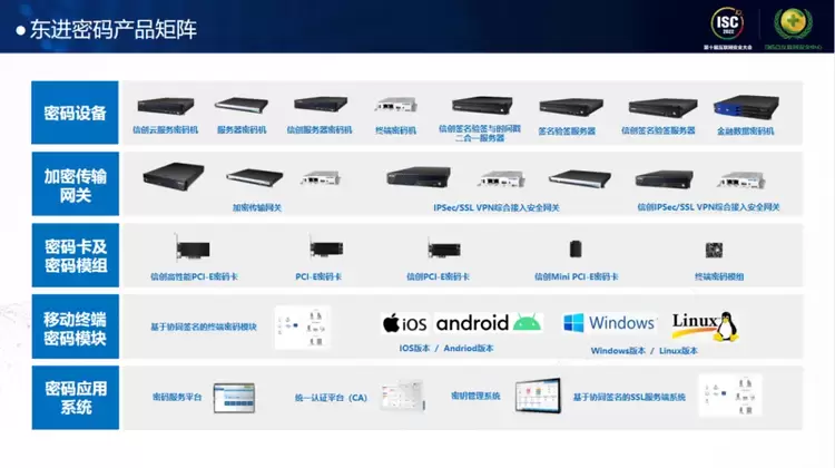 为满足信息系统密码应用的技术要求和管理要求,东进技术凭借深厚的技术积淀、丰富的项目实施经验,自主研发一系列密码产品。