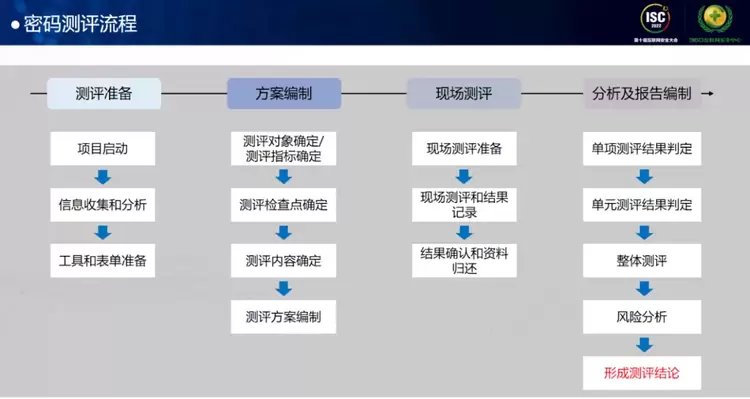 密码测评包括测评准备、方案编制、现场测评、分析及报告编制等流程,其中涉及信息系统密码应用的技术要求和管理要求。