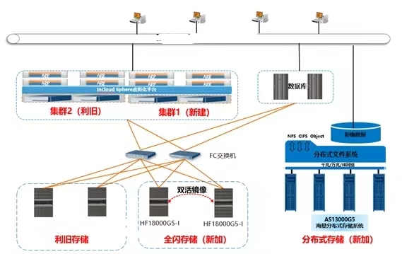 再次,针对关键性应用HIS、集成系统,要求高并发、高IO、高稳定性的业务特征,后端采用两台高端全闪HF18000双活存储通过SSD构建存储资源池以满足高性能和业务连续性的要求。