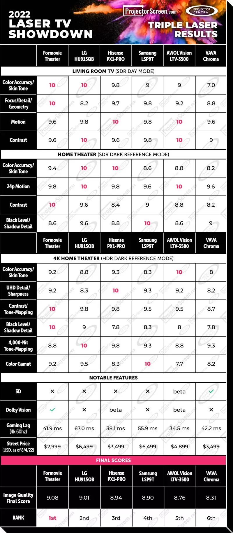 近日,由国际知名投影媒体ProjectorCentral和电商平台ProjectorScreen举办的激光电视大横评公布结果。本次,在全色激光电视品类横评共有包括峰米在内的6家顶级激光电视品牌产品参评,其中,峰米全色激光电视T1海外版(以下简称“峰米T1海外版”)凭借出众的专业实力从众多产品中脱颖而出,以极致的硬件配置和优秀的使用体验,斩获本次横评的桂冠。