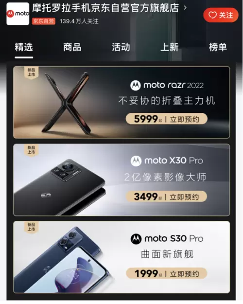总体来说,新发布的moto S30 Pro、moto X30 Pro和moto razr 2022三款新品亮点十足,前者重新定义“中杯”旗舰,moto X30坐拥2亿像素大底,开启新影像时代,moto razr 2022则凭借无缝平整的折叠设计,丰富的外屏功能组合令消费者拍手称快。如果你也对这三款moto新品倍感兴趣,赶快来京东下单吧。