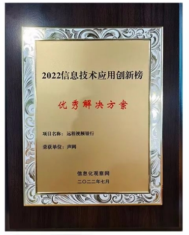在2022年7月29日由中国信息协会主办的“2022 第五届中国信息技术应用创新大会”上,声网“远程视频银行”凭借“助力国内多家知名银行构建远程银行服务能力”的卓越贡献,荣获 2022 信息技术应用创新榜优秀解决方案。