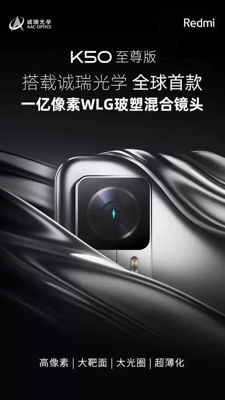 红米K50至尊版搭载诚瑞光学全球首款一亿像素WLG玻塑混合镜头,释放终极影像硬核性能