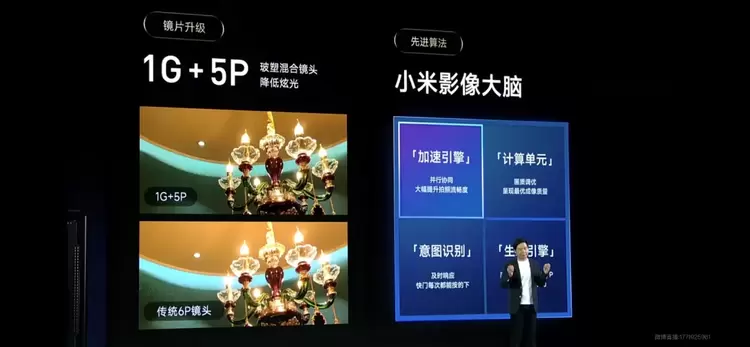 雷军在发布会现场特别介绍:“这个镜头(WLG玻塑混合镜头)特别好,它是1G+5P,就是在镜头组里增加了玻璃镜片,能够增加透光度和降低眩光。”