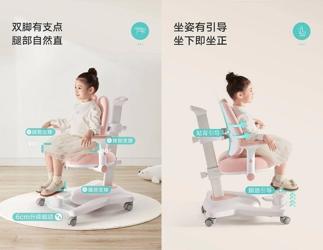 除了光线,桌椅也是影响孩子视力的一大关键要素。S2感光护眼系列学习桌椅,基于黑白调13年人体工学经验,符合儿童生长发育特征。桌椅均可实行上下升降调节,可依据孩子身高体重进行细致化调整。坐垫还可以进行座深调节,孩子再小都能轻松靠到椅背,6厘米的脚踏抬起孩子双脚,辅助孩子维持脚部90°的标准姿势,配合马鞍形坐垫,防止孩子腿部血液不循环。坐垫、椅背多方调节,给孩子腿部、背部、脚部支撑,维持正确的读写姿势。