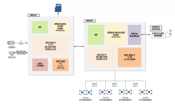值得一提的是,酷芯AR9201首次以自研高性能ISP边缘端芯片核心技术加视频解码器完成高清图片和影像传输、支持超低延时基带芯片补足5G通讯、CPU算法调度和4颗DSP处理全向视觉避障信息,是酷芯首颗集通信、图传、避障、算法调度于一体的高端集成芯片。