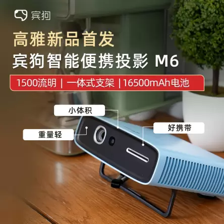 思必驰宾狗智能投影仪M6外形尺寸只有155*133.5*51mm,重量也极轻,仅仅996g,轻盈小巧的手持感,让人爱不释手。无论外出还是居家,尽可让人收纳无忧。不同于其他投影仪的颜色沉闷,此款投影仪有蓝色、红色可选,红色既年轻奔放,又不失文雅气质。