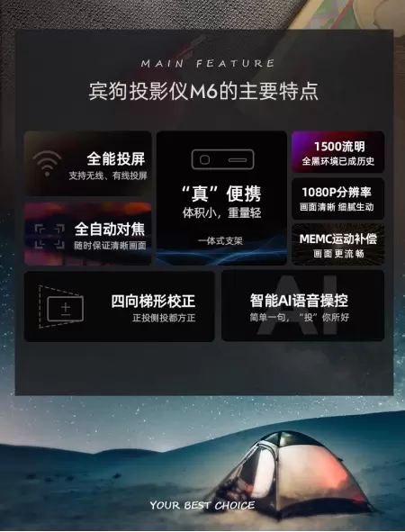 要实现出色的观影体验,需要亮度、画质色彩、音响,以及智能投屏技术等方面的考量。综合看下来,在4000元价位段中,被誉为家用投影仪性价比之王的思必驰宾狗智能投影仪M6再适合不过你了。