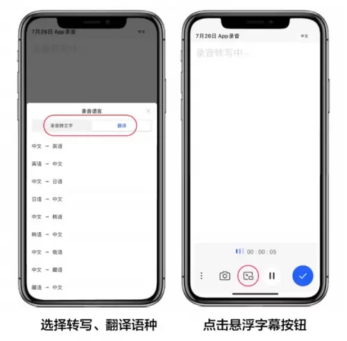 选择音视频语种,或翻译语种。讯飞听见APP的实时字幕支持13种语言的实时转写、6种语言的翻译,中英文混合也同样支持识别。