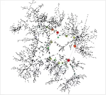 这里简要介绍一下聚信立的社交网络分析方法。聚信立处理了超过3200万申请人的查询申请,通过观察申请人及其联系人的联系网络,可构成一张覆盖申请人及其联系人在内的总共7亿人的巨大网络,同时覆盖90%以上借贷人群。如何能给这个庞大网络中的每个个体精准评分呢?我们相信“近朱者赤,近墨者黑”的原则同样适用于借贷人群,本着这一理论基础我们衍生出了自己的基于社交网络的算法。