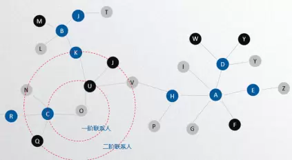 - X阶联系人:联系人可分为直接和间接联系人,直接联系人是指和申请人有过直接通话记录的号码,我们称其为一阶联系人,间接联系人是指联系人的联系人,依次可以分为二阶联系人、三阶联系人等,显然直接联系人比间接联系人更能影响种子号码,越高阶联系人,影响力越弱。