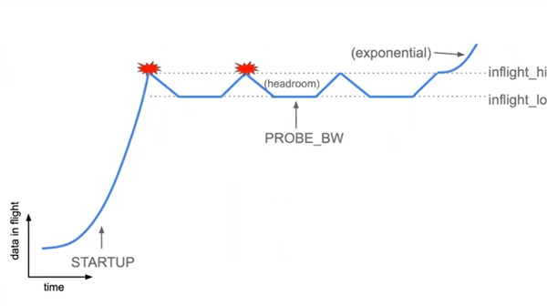 将最近10次往返中测得的最大带宽视为Bmax,将过去10s中测得的最小RTT视为Tprop,然后根据这两个值估算BDP。