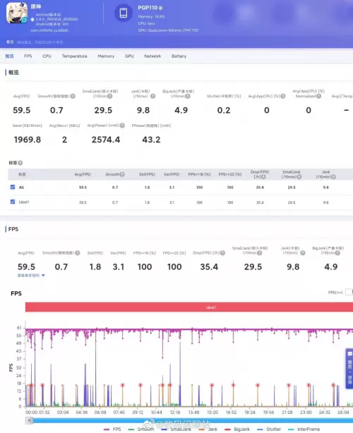 其次就是高规格的性能配置带来的使用体验了。以最能全面体现性能释放的游戏为例,在目前最主流的测试游戏《原神》中,一加Ace Pro能够做到高画质、高帧率、高分辨率的情况下,达到一小时平均帧率59.5帧的成绩,帧率的波动幅度不会太大,这在目前的性能机型中还是颇为少见的。