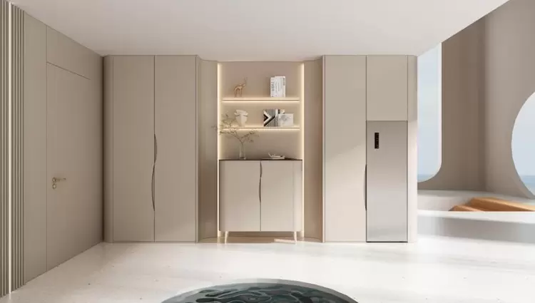 以智能科技加持,感知智慧带来的全新生活。有屋智能通过语音及APP控制与场景联动,多种场景模式自如切换。轻智能融入,让家更美好。以科技美学,重塑人与环境的连接方式。在智能鞋柜、智能衣物护理柜,智能餐边柜、智能衣柜、婴儿温衣柜的加持下,通过模块化打造,实现产品纵向与横向的衍生。通过自由组合,实现场景个性化打造。