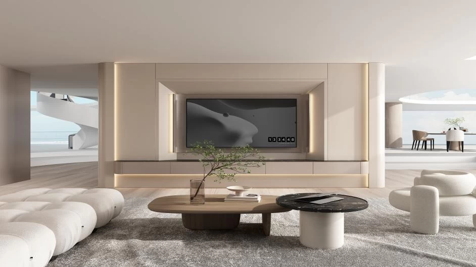 有屋智能客厅智享一体式娱乐体验,只需一句语音命令,多种场景自由切换,开启娱乐所需一切准备,轻轻松松提升空间的趣味与氛围。