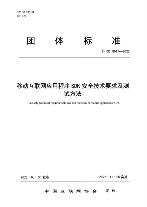 该标准规定了移动互联网程序(App)软件开发工具包(SDK)的开发、运营中的安全要求,并描述了满足这些安全要求的证实方法。标准适用于移动互联网应用程序SDK安全测评工作,为相关机构强化测评能力、健全技术手段提供指引,为SDK开发者提升其产品安全水平提供参考。