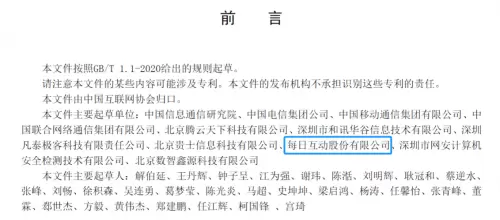 每日互动一直非常重视SDK安全建设及行业绿色生态共建,积极牵头行业规范和标准的研究与制定,引领行业健康、持续发展。除了参与该标准的起草外,公司还牵头起草了国内首份SDK安全国家标准《信息安全技术 移动互联网应用程序(APP)SDK安全指南》,以及参与起草了《网络安全标准实践指南—移动互联网应用程序(App)使用软件开发工具包(SDK)安全指引》《信息安全技术 移动互联网应用程序(App)个人信息安全测评规范》等多个国家标准和指引规范。其中,《信息安全技术 移动互联网应用程序(APP)SDK安全指南》已于2021年顺利开展试点工作。此外,公司牵头的国家标准研究项目《信息安全技术 精准营销服务数据安全指南》已处于验收阶段。