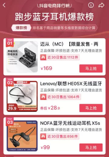 蓝牙耳机谁家强?现在揭晓痘印电商爆款排行榜单,迈从BH207进入榜单第一名。迈从(MC)专注数码外设的研发和设计, 旗下产品涵盖音频、支架以及键鼠类,2022年迈从的蓝牙二级开始崛起,在抖音平台获得巨大反响,一经发售就登顶爆款榜。