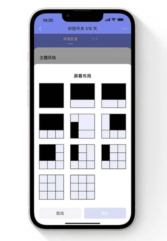 值得一提的是,Aqara 妙控开关S1E采用了全新的交互方式,以新潮、时尚的设计,为行业打开潮流新趋势。精心设计的十三款个性化多彩主题,搭配十种九宫格布局,让用户可以根据个人喜爱和使用习惯,自定义妙控卡片的横竖与大小,并可放置在任意位置,轻松玩出与众不同的个性与时尚。