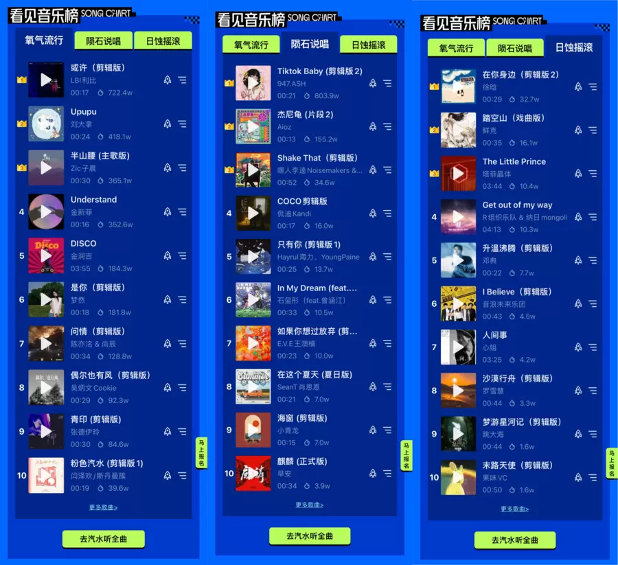 「2022抖音看见音乐计划」三大赛道前十出现 百花齐放竞争总榜TOP10