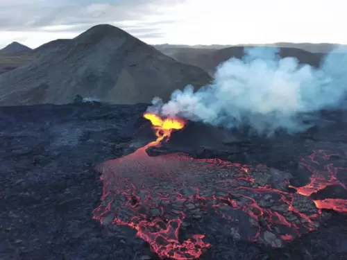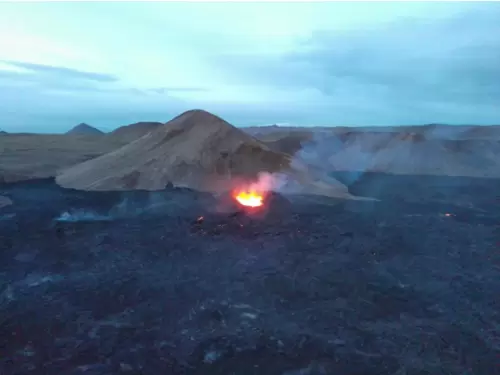 近日,冰岛雷克雅内斯半岛格林达维克镇附近的法格拉达尔火山喷发,熔岩从火山周围的地裂缝中流出。法格拉达尔火山靠近冰岛南部,离著名景点蓝湖温泉和冰岛国际机场不远,在休眠近6000年后,于近两年再度活跃并开始喷发。难得一见的壮观景象也吸引了大批摄影爱好者,英国摄影师Hugo Healy就是其中一员,为了近距离探索火山奇观,他带着道通智能EVO Nano+无人机沿峡谷崎岖的山路徒步数小时。
