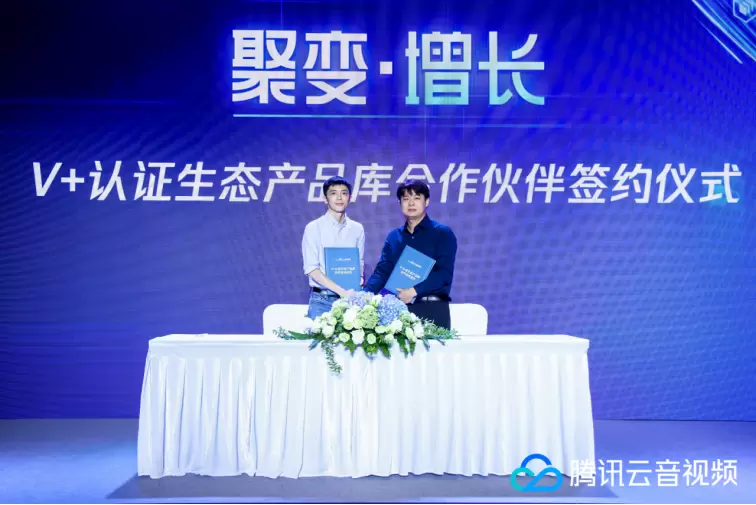 腾讯云音视频副总经理李志成与合作伙伴签约