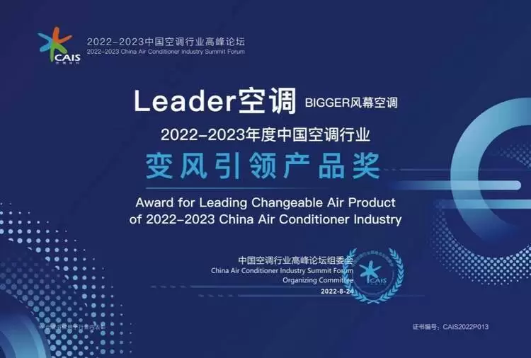 8月24日,“无风有氧·TAN本溯源”2022-2023中国空调行业高峰论坛正式举办。论坛聚焦空调行业全产业链发展,邀请专家、企业梳理年度市场情况,发布《2022-2023冷年空调产品趋势》,并就未来走向及产品趋势加以分析。而作为论坛主题,“无风有氧”的风感体验自然也备受关注。其中,Leader BIGGER风幕空调以大风幕设计创造的变风体验受到认可,获得行业颁发的“变风引领产品奖”。