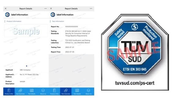 TUV南德合客户及市场需求,推出了ETSI EN 303 645相关的测试、二维码标签、认证系列服务,以满足客户消费类产品在网络安全层面不同类型的测试和认证需求。