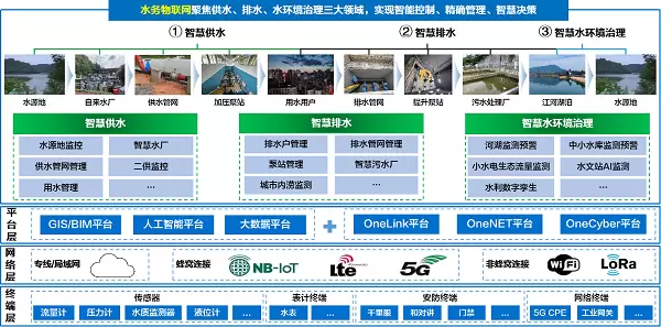 中移物联“水务物联网”解决方案重点围绕智慧供水、智慧排水、智慧水环境三大领域,为政府主管部门、水司企业、用水单位等客户群体,提供综合性信息化服务。在供水领域,实现“从水源头到水龙头”全流程监测,支撑供水业务精确管控,助力提升农饮水普及率。在排水领域,构建“源网站厂河”全链条业务场景,解决城镇污水处理、城市内涝防治等问题。在水环境治理领域,以“监测+管理+可视”的监管手段,融合江河湖泊与水源地防治,实现水岸同治的目标。