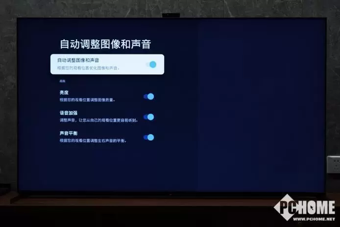 这枚新加入的BRAVIA摄像头所能实现的功能可以在设置菜单中进行单独的设置,目前包括有自动调整图像和声音以及过近提醒。