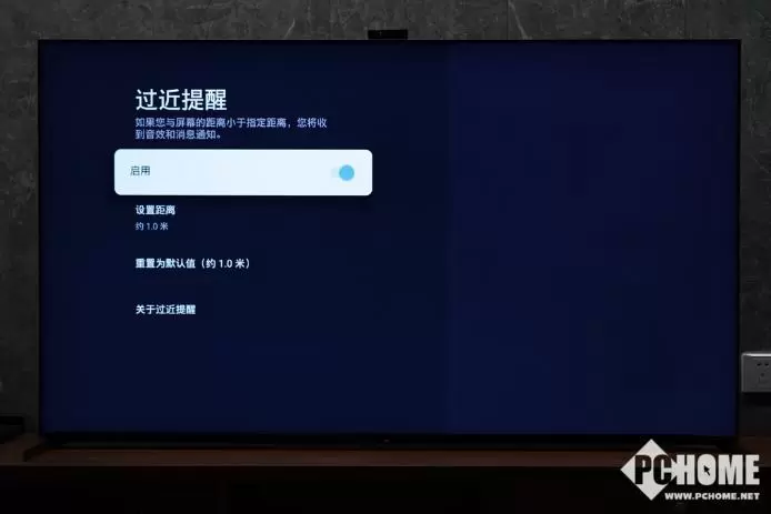 后者比较好理解,就是通过摄像头来感知观看者的观看距离,一旦发现观看距离过近后就会在屏幕上进行提示并进行声音提醒,这一功能主要适用于家里的小孩,可以避免近距离观看影响视力。