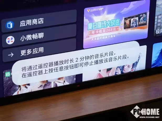 此外,遥控器还增加了按键背光,即便是在纯黑的环境下也可以通过背光来识别按键。对于经常找不到遥控器的用户,在电视端可以通过“小微小微,寻找遥控器”激发遥控器上的蜂鸣器帮助寻找。