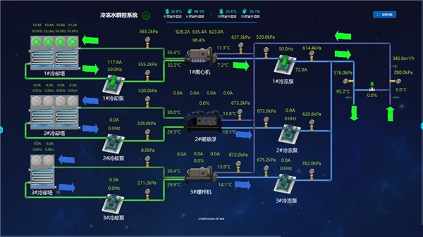 “在一个制冷系统中,开几台水泵、每台水泵运行频率多少、出水温度设定多少、房间温度设置多少、风量设置多少、新风进来多少等,都会带来不同的用电量和不同的制冷效果。比如,制冷机采用大出水量和比较高的水温,与较小出水量和比较低的水温都能达到同样的制冷效果,但用电量却不同,如何配置耗电更少一些就可以通过人工智能技术来帮忙。”林兴斌说。
