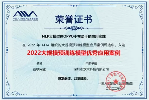 多年来,OPPO小布助手一直专注探索AI技术,不仅完成了十亿参数的「OBERT」的预训练,进入十亿级模型上第一梯队,还获得了2022信通院大规模训练模型优秀应用案例。