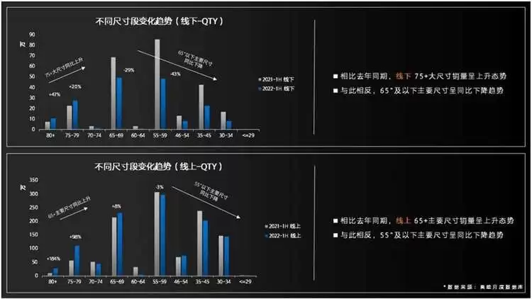 现如今,行业数据验证了“高端大屏”策略的准确性。尽管市场相对饱和,奥维云网数据却显示,2022年1-6月,线上、线下75英寸及以上尺寸电视机销售额均大幅上涨。可以看出,用户从小屏升级到大屏的趋势越发明显。