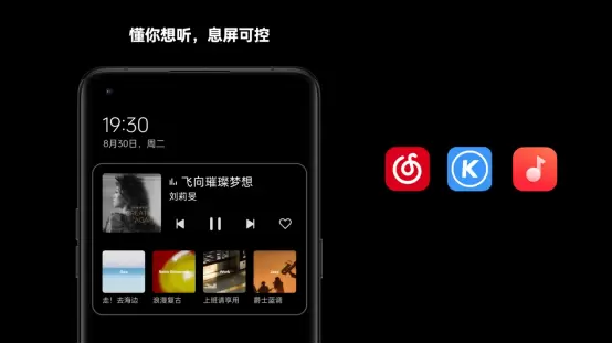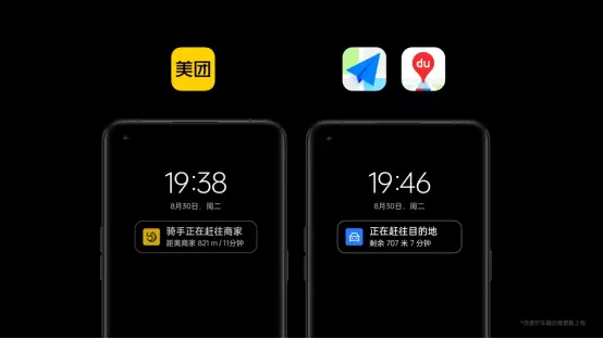 针对常用的生活场景,ColorOS 13对智慧息屏做了全新升级——只需打开智慧息屏的场景化信息功能,当用户处于外卖、叫车或听歌场景时,智慧息屏就会主动感知相关应用状态,并实时显示订单或歌单进程,无需反复亮屏查看,减轻了操作负担。