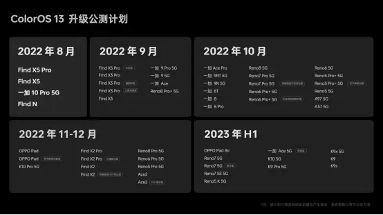即日起,ColorOS 13正式版本开启公测推送,首批面向Find X5 Pro、Find X5、 Find N、一加10 Pro,后续更多老机型也将陆续跟进适配。