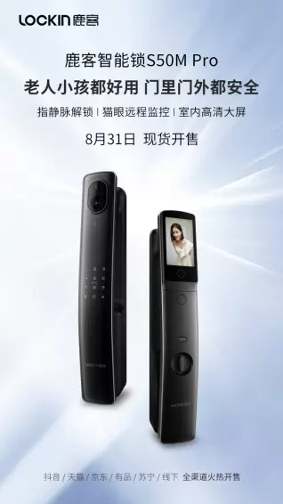 8月31日,鹿客新品指静脉大屏猫眼智能锁S50M Pro开启全渠道现货发售,官方售价2999。S50M Pro定位高端智能锁,在S50M的基础上升级鹿客指静脉3.0技术,新增4寸IPS室内高清大屏,采用超清夜视大广角猫眼。三大核心功能,主打有老有小的家庭用户,全面守护家的安全。