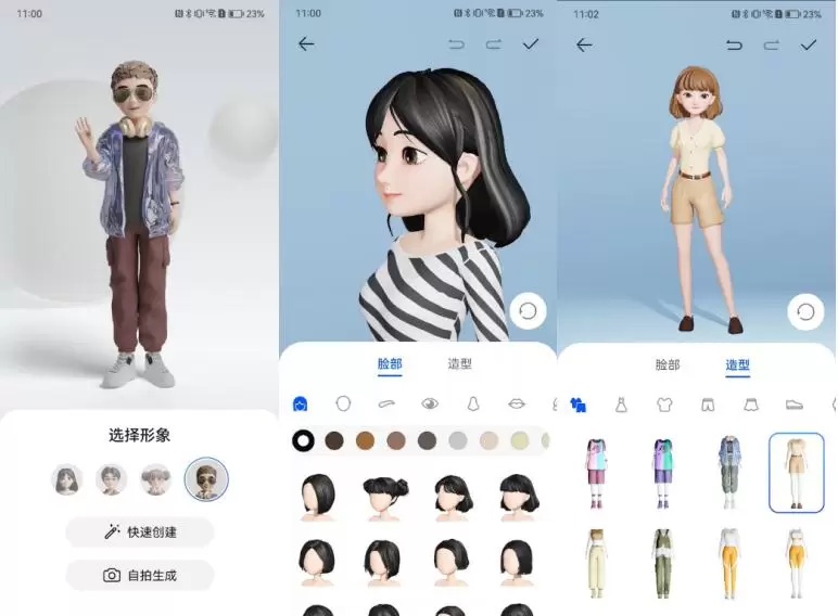 最新发布的华为HarmonyOS 3上,只需要打开华为帐号,通过拍照或上传图片,华为AI计算就会根据五官、面部等特征一键生成虚拟形象。如果动手能力很强,还可以随心捏脸,数百种脸型、五官、发型、妆容、胡须等预置模板,可以组合出千变万化的形象,上演自己的百变大咖秀,生成鸿蒙世界的“另一个你”。