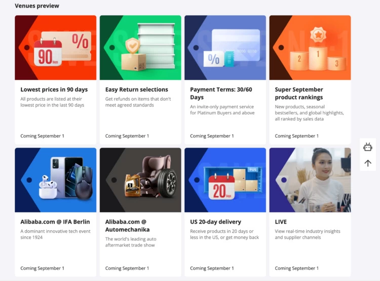(图注:阿里国际站九月采购节大促主会场核心权益)