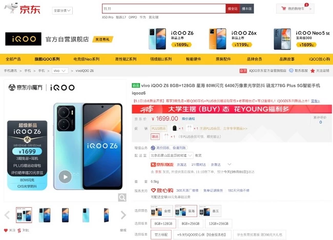 iQOO Z6系列正式开售 京东下单享3期免息赠iQOO耳机