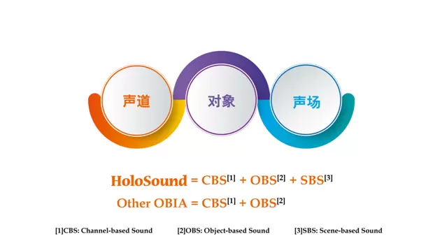 HOLOSOUND符合国际DCI/SMPTE IAB、AES等音频标准的沉浸式音频技术,它集声道技术(CBS)、对象技术(OBS)与独创的声场技术(SBS)于一体,能够完美还原三维声场空间的声音元素,更大程度上实现声音三维感、沉浸感、真实感,带给用户逼真灵动的音频体验,代表着音频技术的发展方向。