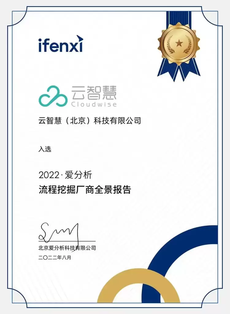 - 云智慧入选《2022爱分析流程挖掘厂商全景报告》