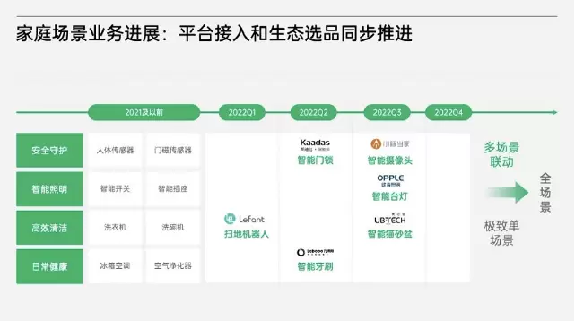 在OPPO IoT生态业务上,在安全守护场景,OPPO联合小豚当家,围绕场景体验发挥各自对用户的理解,共同定义产品,推出新一代家庭看护机——智能家用摄像头。万物互联时代,没有一个产品是孤立的,OPPO小豚当家智能摄像头,同时能与OPPO智能门锁深度联动,比如推门回家时,摄像头会自动休眠进入物理遮蔽状态,离家时,摄像头自动开启布防模式;营销和渠道方面,双方共同投入联合运作;技术层面,OPPO提供平台、连接和前端App端到端的支撑。通过双方紧密合作,产品得到了用户广泛好评。