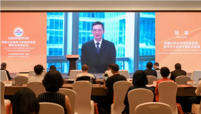 9月1日,数字贸易发展趋势和前沿高峰论坛在北京国家会议中心召开。作为2022年中国国际服务贸易交易会的重要论坛之一,本届论坛以“数字化赋能贸易高质量发展”为主题,围绕数字贸易技术、产业、发展、合作等议题,推动构建数字贸易全球合作新格局。高通公司全球高级副总裁、技术许可业务中国区总经理钱堃受邀参与高峰论坛,并带来主题为“数字技术开启服务贸易新空间”的视频演讲。他从跨国公司和无线科技创新企业的视角,指出了5G创新与合作对数字经济与数字贸易带来的深远影响,并分享高通与中国产业伙伴合作,以5G等数字技术,拓展数字服务、数字贸易新形态方面的成果与实践。